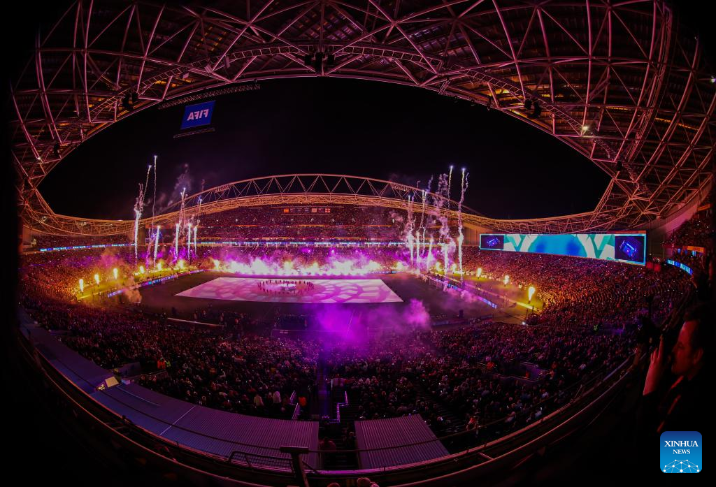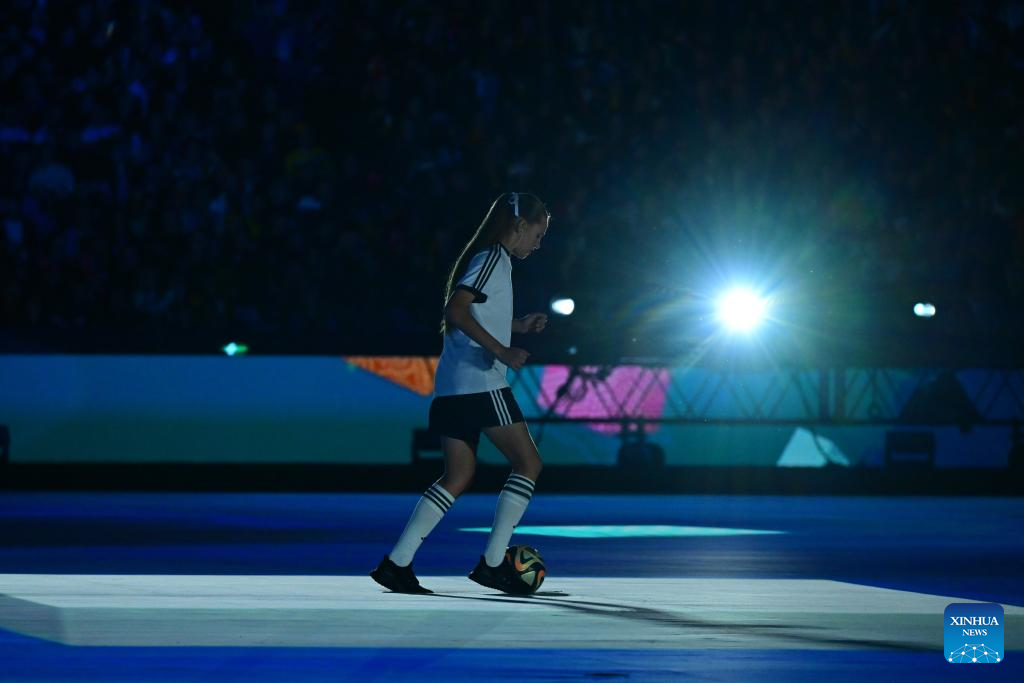Photo taken on Aug. 20, 2023 shows the closing ceremony prior to the Final between Spain and England at the 2023 FIFA Women's World Cup in Sydney, Australia. (Xinhua/Ding Ting)