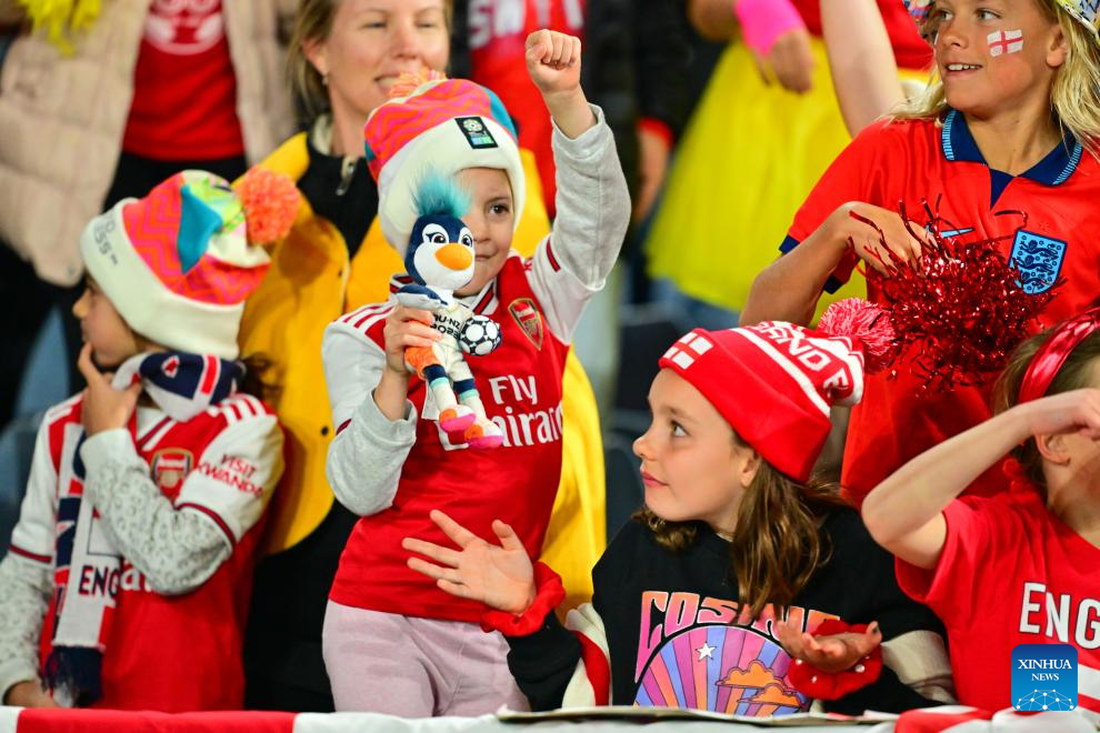 Fans cheer for team England prior to the final match between Spain and England at the 2023 FIFA Women's World Cup in Sydney, Australia, Aug. 20, 2023. (Xinhua/Zhu Wei)