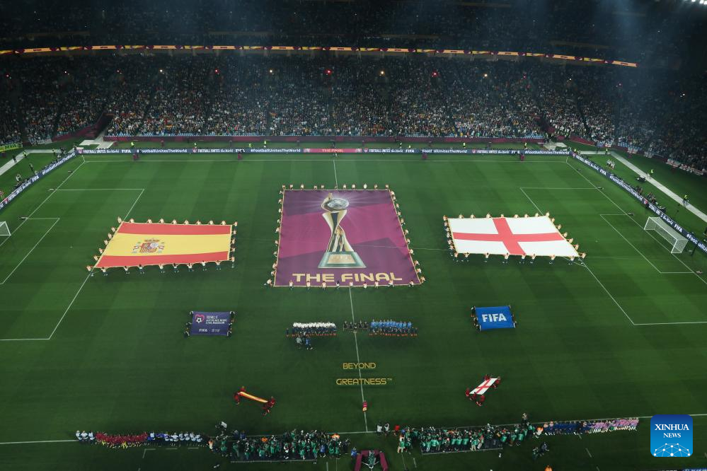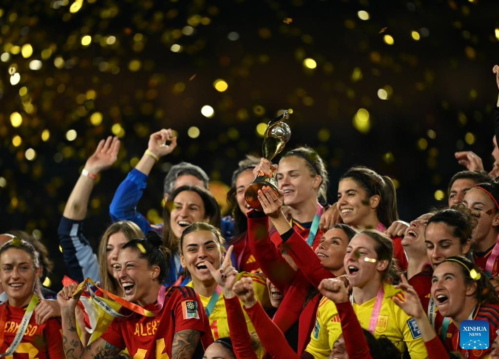 SYDNEY, Aug. 20 (Xinhua) -- A new name has been etched onto the FIFA Women's World Cup trophy as Spain became the fifth team to win the title after beating England 1-0 here on Sunday.