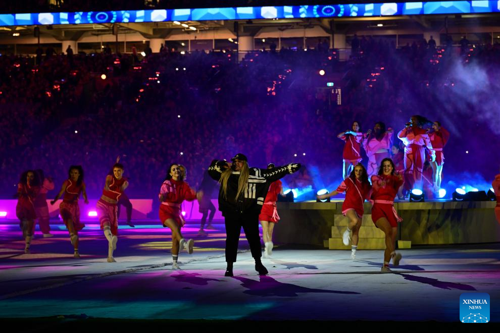 Artists perform during the closing ceremony prior to the Final between Spain and England at the 2023 FIFA Women's World Cup in Sydney, Australia, Aug. 20, 2023. (Xinhua/Zhu Wei)