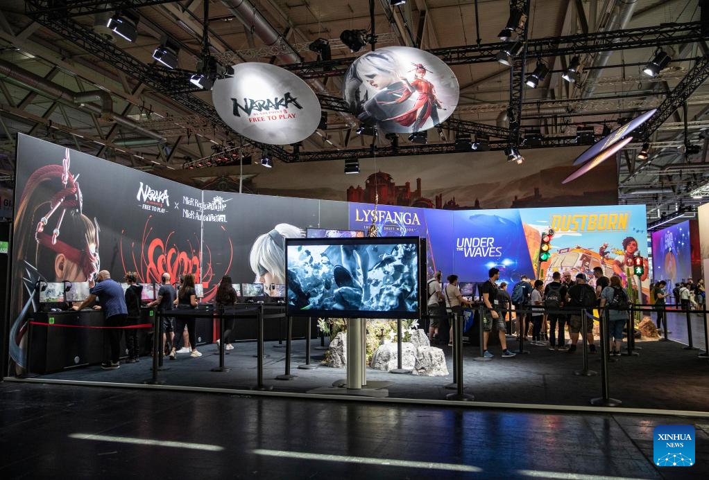 People visit the booth of NetEase during gamescom 2023 in Cologne, Germany, Aug. 23, 2023. The 2023 edition of the international computer and video games trade fair gamescom opened on Wednesday in Cologne, western Germany. Chinese companies displayed their products on the trade fair.