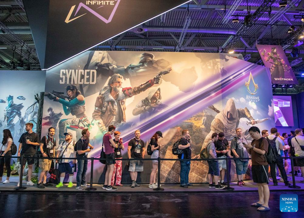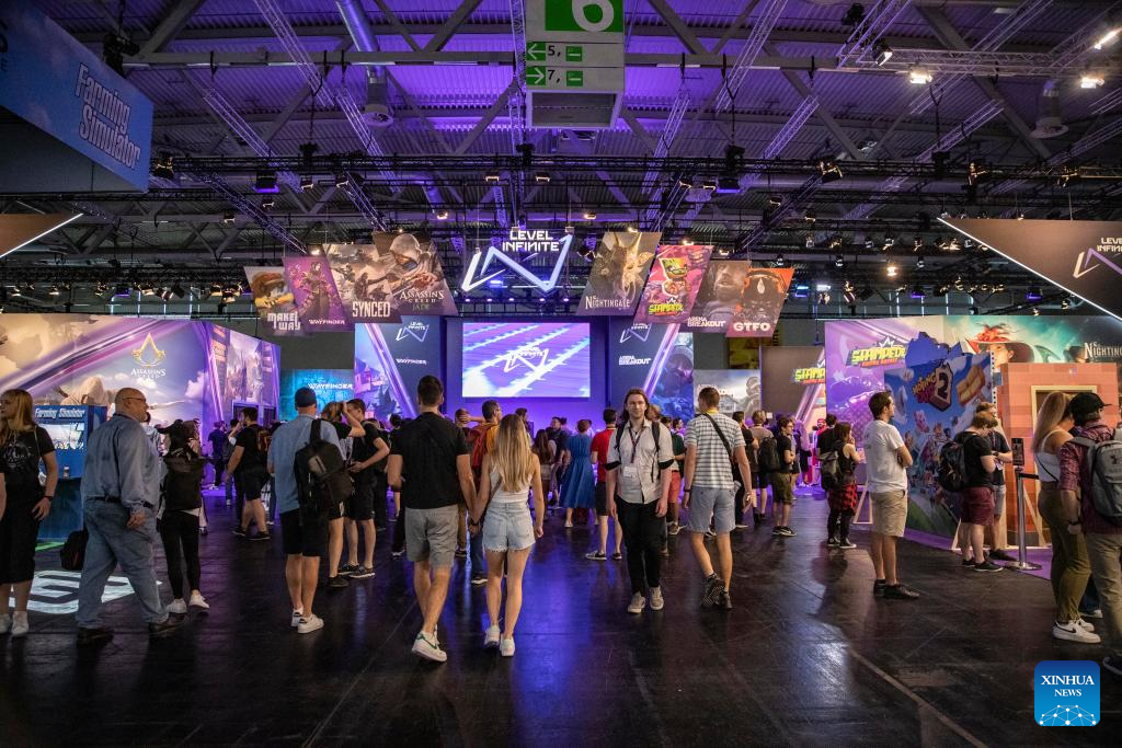 People visit the gamescom 2023 in Cologne, Germany, Aug. 23, 2023. The 2023 edition of the international computer and video games trade fair gamescom opened on Wednesday in Cologne, western Germany. Chinese companies displayed their products on the trade fair.