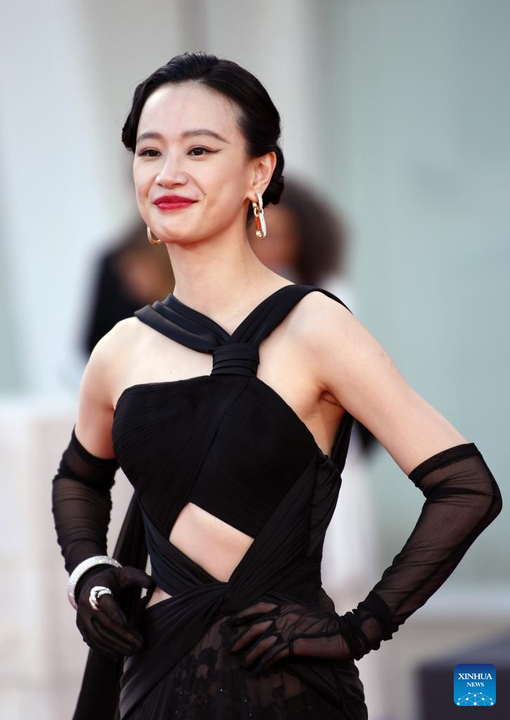 Actress Li Meng poses on the red carpet of the 80th Venice International Film Festival in Venice, Italy, Aug. 30, 2023. The 80th annual Venice International Film Festival kicked off here on Wednesday evening, with a diverse line-up of movies competing for the prestigious Golden Lion prize. (Xinhua/Jin Mamengni)