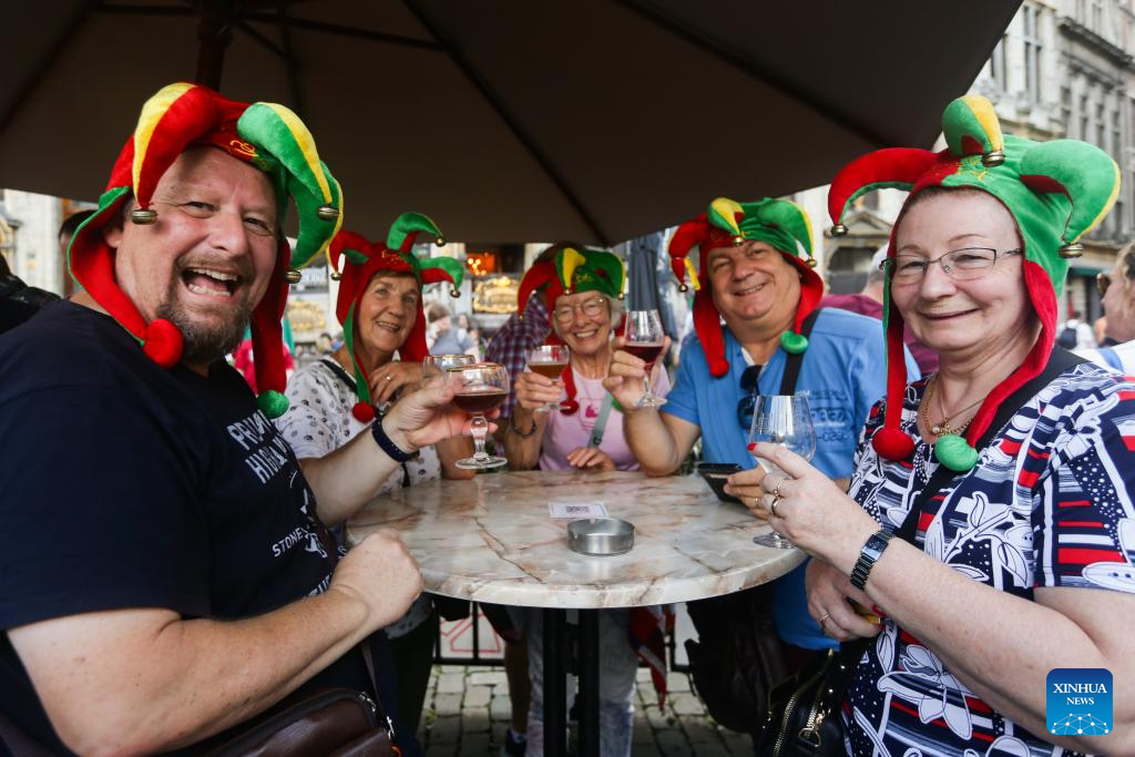 People enjoy beers at the 23rd Belgian Beer Weekend in Brussels, Belgium, Sept. 2, 2023. More than 500 Belgian beers were presented by 53 breweries to the public during the event. (Xinhua/Zheng Huansong)