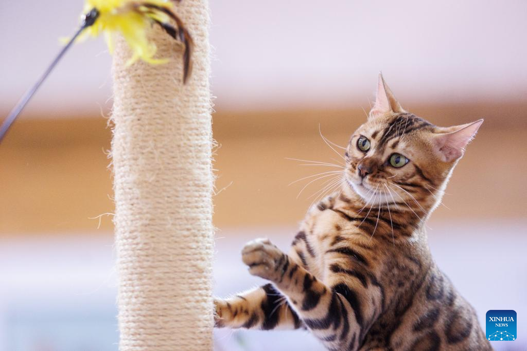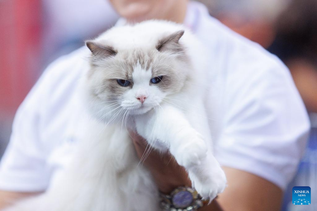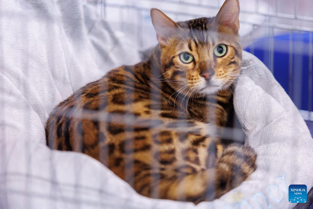 A cat is seen at the Mediterranean Cat Show in Opatija, Croatia on Sept. 16, 2023. (Nel Pavletic/PIXSELL via Xinhua)