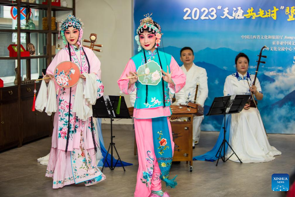 Artists perform a traditional Chinese opera in Sofia, Bulgaria, on Sept. 20, 2023. East China's Jiangxi Province was the subject of a presentation held at the China Cultural Center here on Wednesday. Beyond a general introduction, the event was aimed at encouraging exchanges. (China Cultural Center in Sofia/Handout via Xinhua)