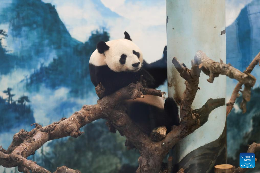 Giant panda Xing Ya is seen after his daughter Fan Xing left at the Ouwehands Zoo in Rhenen, the Netherlands, Sept. 27, 2023. More than three years after Fan Xing was born at Ouwehands Zoo in Rhenen, the Netherlands, the giant panda cub received a festive farewell ceremony on Wednesday and left for China. (Xinhua/Zheng Huansong)
