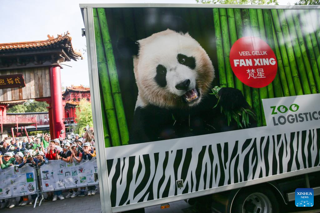 THE HAGUE, Sept. 27 (Xinhua) -- More than three years after Fan Xing was born at Ouwehands Zoo in Rhenen, the Netherlands, the giant panda cub received a festive farewell ceremony on Wednesday and left for China.