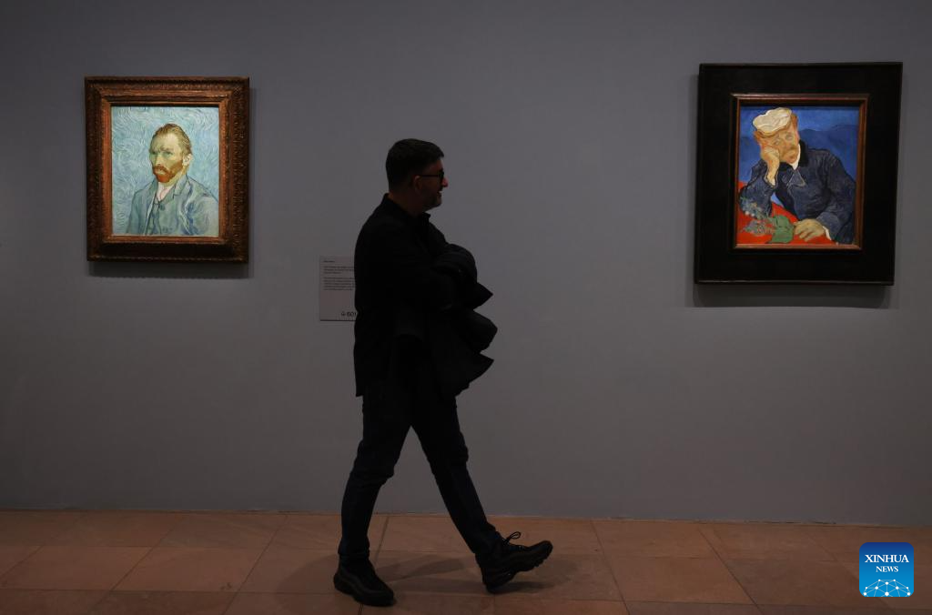 A man visits the exhibition "Van Gogh in Auvers-sur-Oise, the Final Months" at Orsay Museum in Paris, France, Oct. 16, 2023. The exhibition opens for the public from Oct. 3, 2023 to Feb. 4, 2024. (Xinhua/Gao Jing)