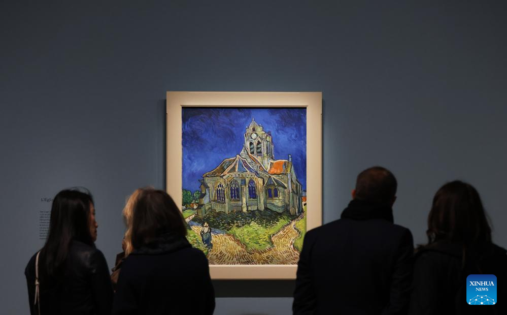 People look at "The Church at Auvers" at the exhibition "Van Gogh in Auvers-sur-Oise, the Final Months" at Orsay Museum in Paris, France, Oct. 16, 2023. The exhibition opens for the public from Oct. 3, 2023 to Feb. 4, 2024. (Xinhua/Gao Jing)