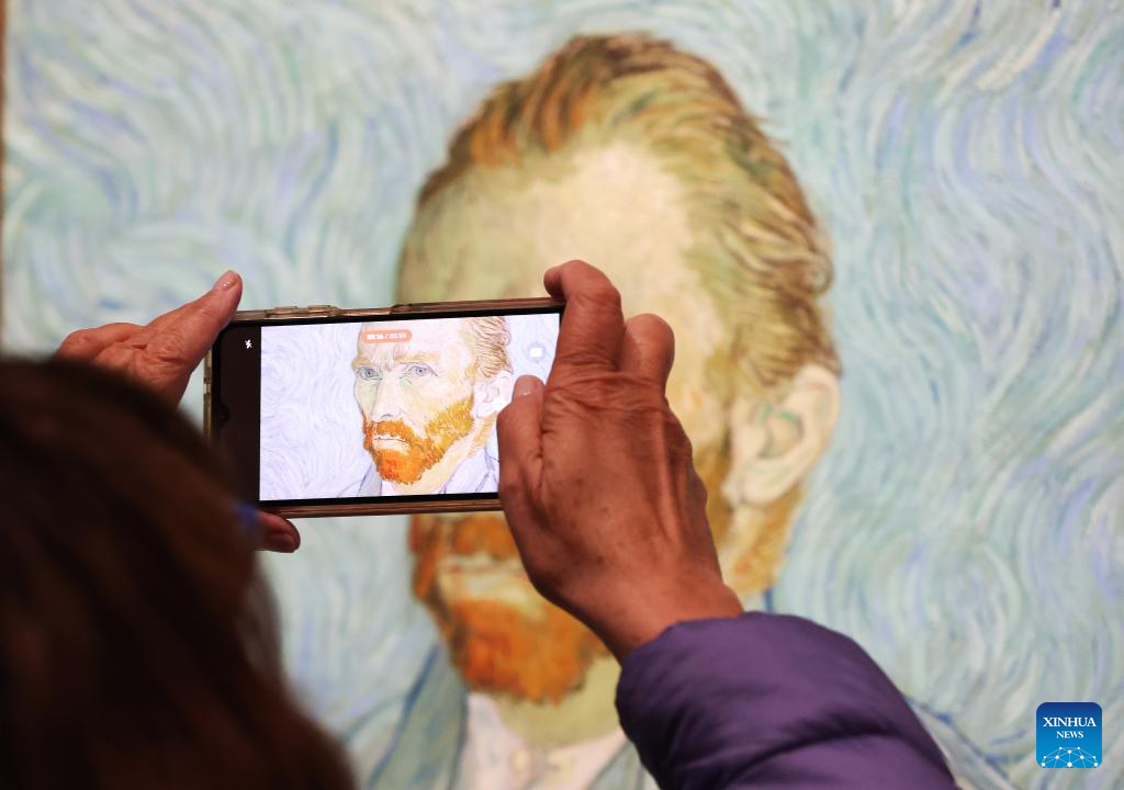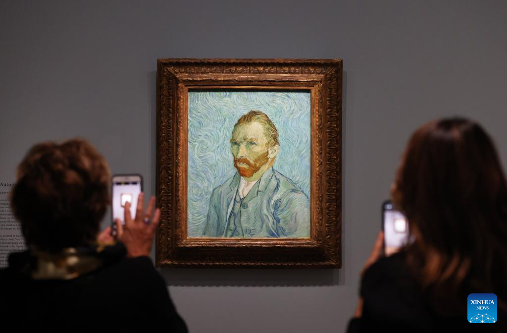 A woman takes photos of "The Self-Portrait" at the exhibition "Van Gogh in Auvers-sur-Oise, the Final Months" at Orsay Museum in Paris, France, Oct. 16, 2023. The exhibition opens for the public from Oct. 3, 2023 to Feb. 4, 2024. (Xinhua/Gao Jing)
