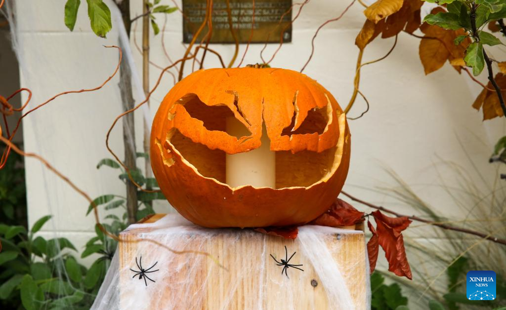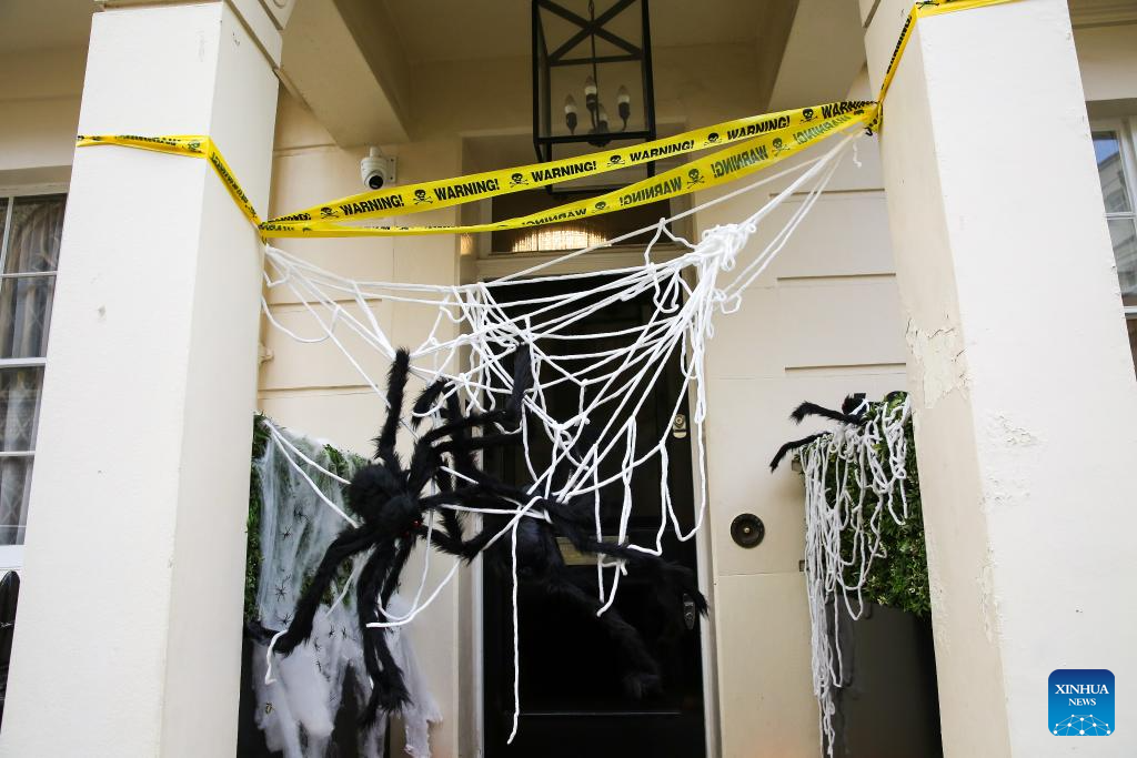 This photo taken on Oct. 30, 2023 shows Halloween decorations in London, Britain. (Xinhua)