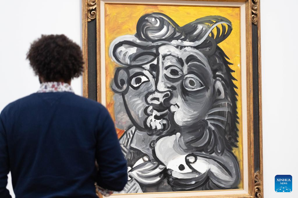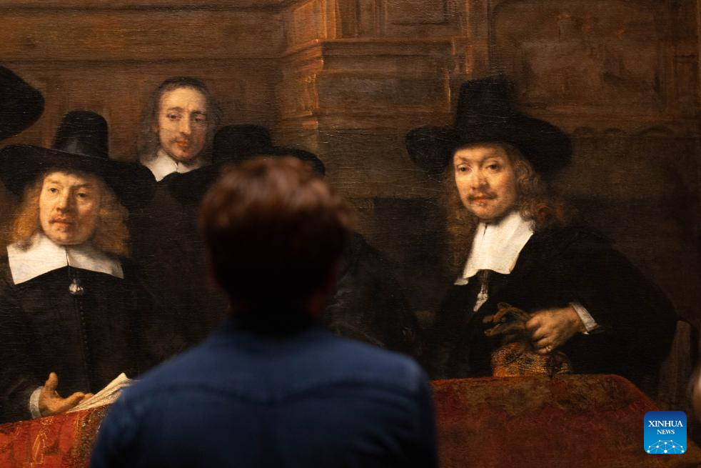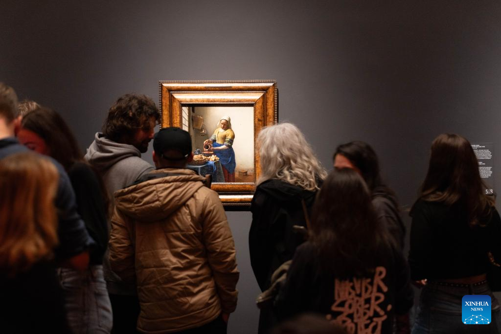 A visitor views an artwork at the Rijks museum during the Museum Night event in Amsterdam, the Netherlands, Nov. 4, 2023. The Museum Night is an annual event which allows people to visit Amsterdam's museums at night. (Photo by Sylvia Lederer/Xinhua)
