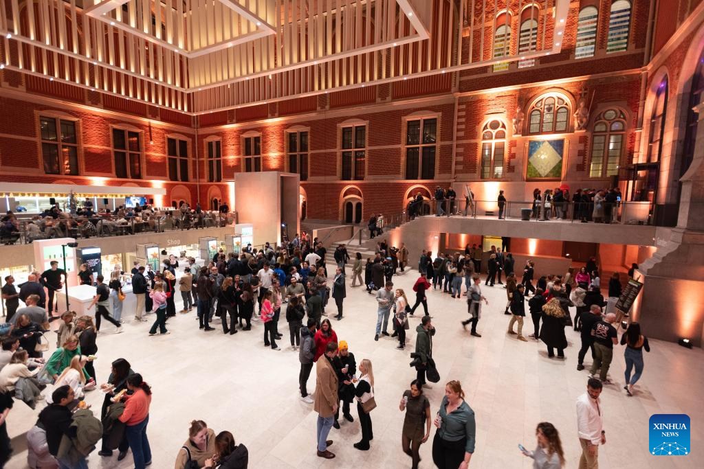 People visit the Rijks museum during the Museum Night event in Amsterdam, the Netherlands, Nov. 4, 2023. The Museum Night is an annual event which allows people to visit Amsterdam's museums at night. (Photo by Sylvia Lederer/Xinhua)
