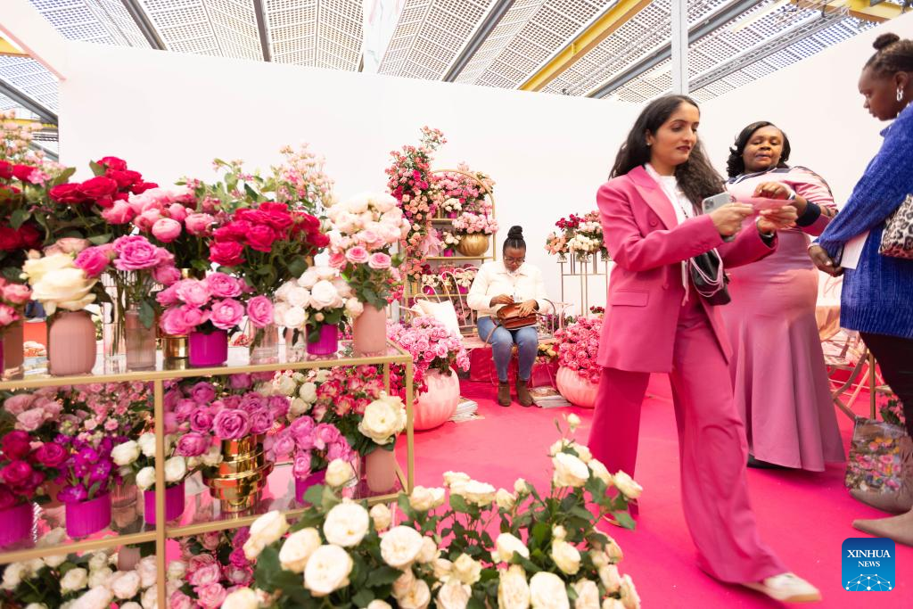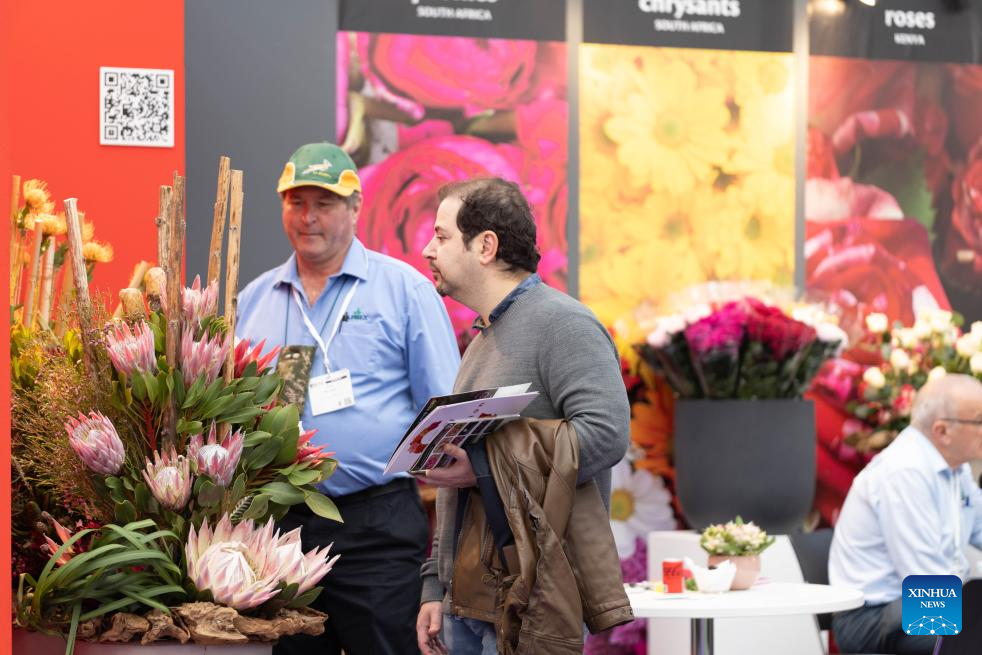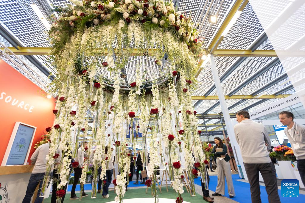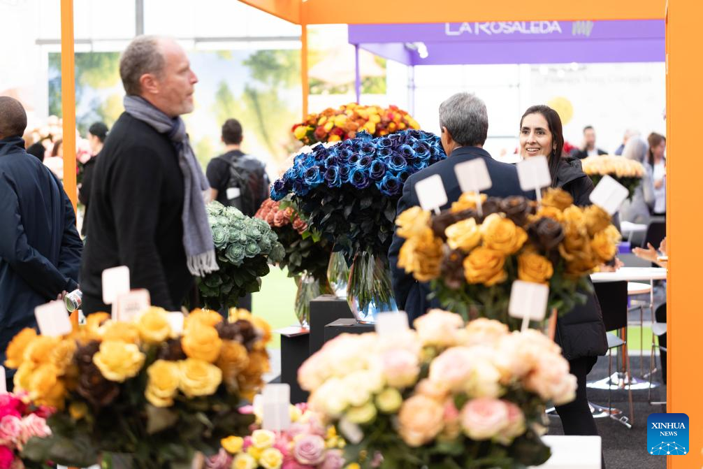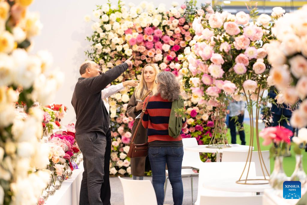 People visit 2023 International Floriculture Trade Fair (IFTF) in Vijfhuizen, the Netherlands, Nov. 8, 2023. The IFTF is an annual event in the Netherlands that brings together horticultural professionals, flower lovers and industry experts from around the world. (Photo by Sylvia Lederer/Xinhua)