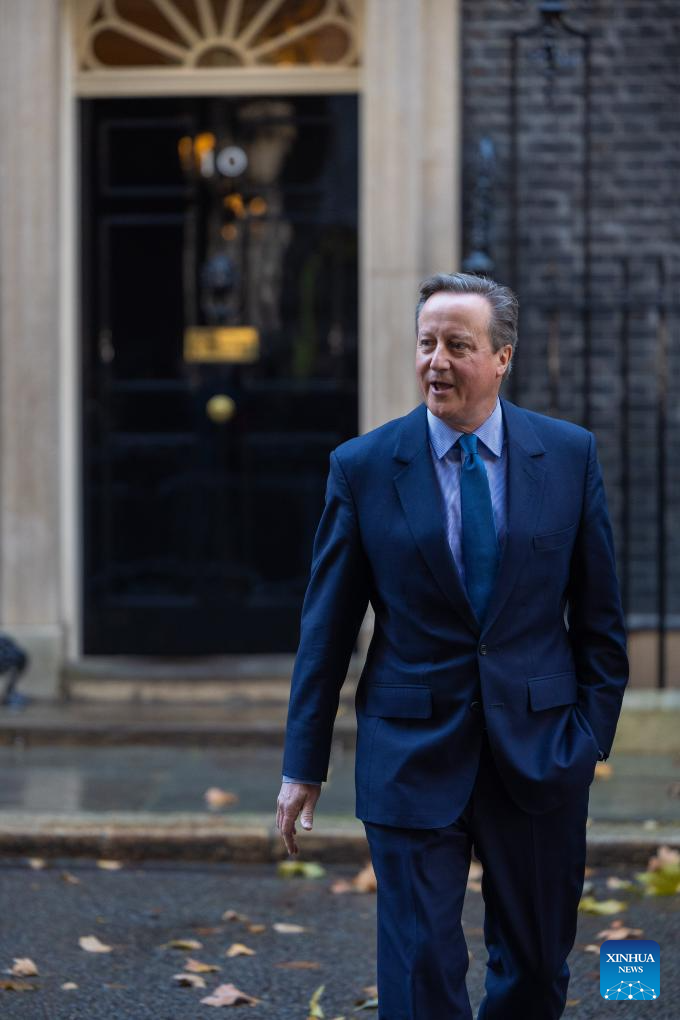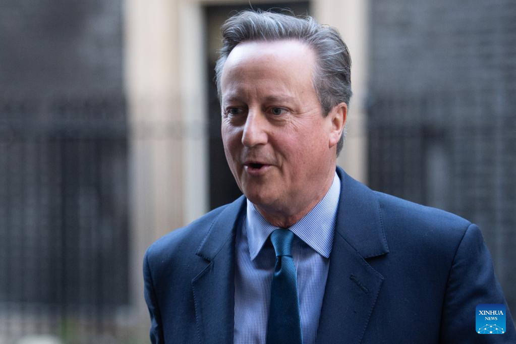 LONDON, Nov. 13 (Xinhua) -- Former British Prime Minister David Cameron made a shock return to government on Monday as he was appointed foreign secretary in Prime Minister Rishi Sunak's cabinet reshuffle.