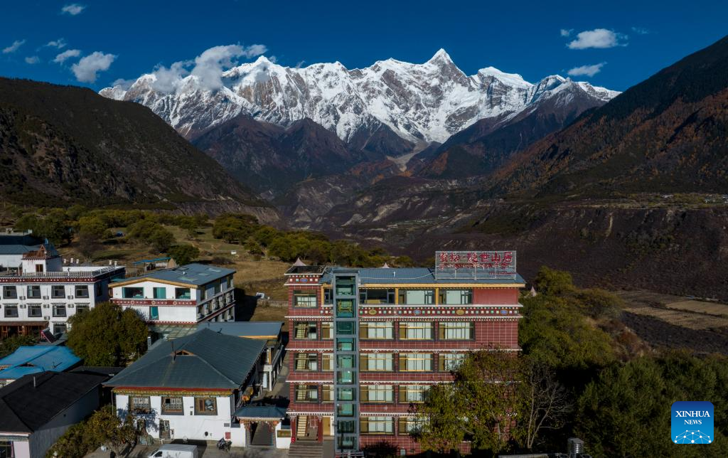 This aerial photo taken on Nov. 13, 2023 shows a homestay run by Tsering Toinzhub and Lhagba Zhoima in Suosong Village of Nyingchi, southwest China's Xizang Autonomous Region.
