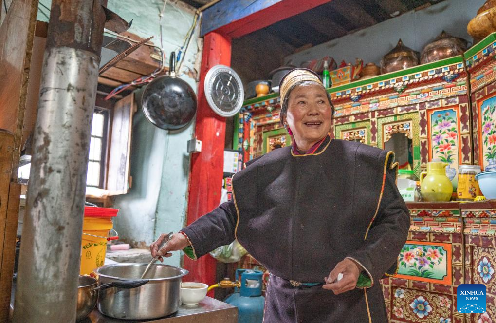 Locals in Nyingchi follow the tradition to celebrate their special New Year, known as the Gongbo New Year, on Oct. 1 by the Tibetan calendar, which fell on Nov. 14 this year. Tsering Toinzhub and Lhagba Zhoima have run a homestay since 2013, bringing in more than one million yuan (about 137,187 U.S. dollars) every year. For their family, the traditional Gongbo New Year is still the most important festival. (Xinhua/Tenzin Nyida)
