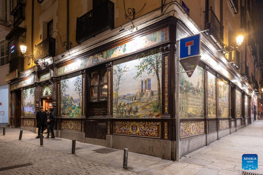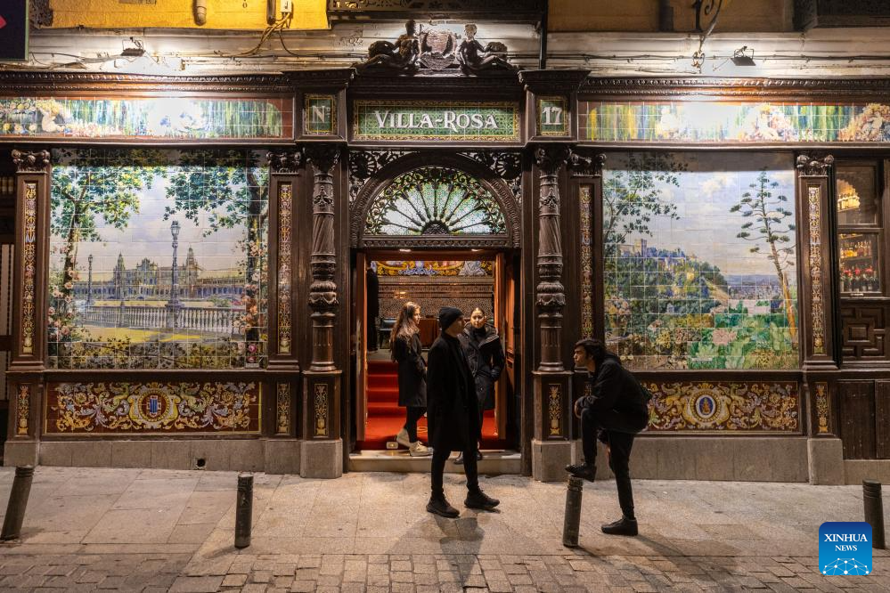 This photo taken on Nov. 16, 2023 shows an exterior view of the Flamenco Tablao 1911 (formerly known as Villa-Rosa) in Madrid, Spain. Originated in 1911, the Flamenco Tablao 1911 is a tavern known for its Flamenco performance and decorations. King Alfonso XIII of Spain, famous writer Ernest Hemingway and some outstanding bullfighters in history were regulars here. (Xinhua/Meng Dingbo)