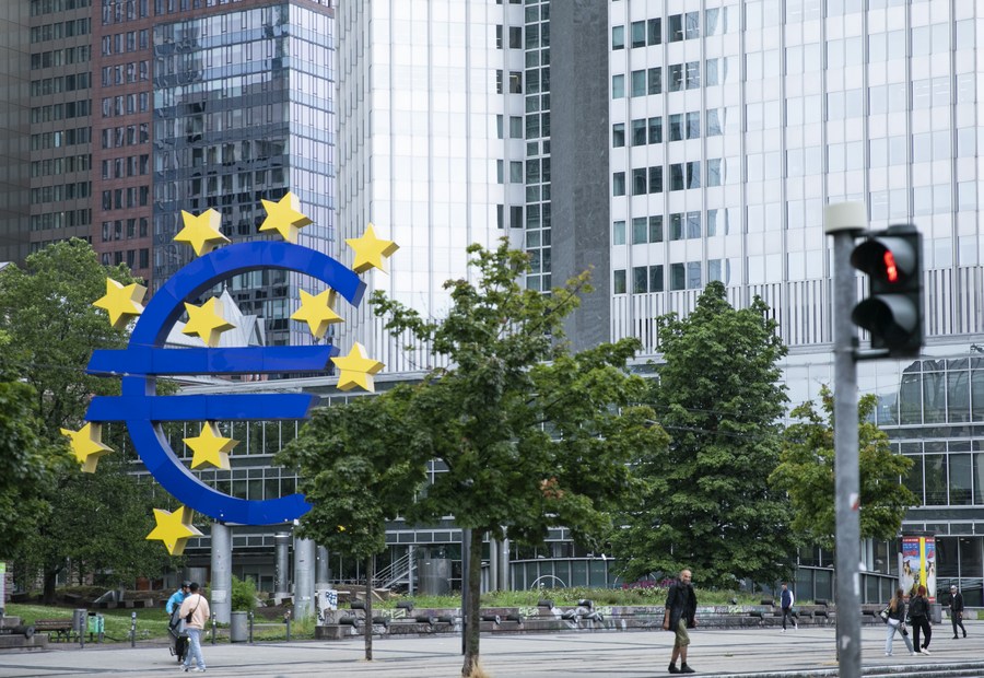 This photo taken on July 27, 2023 shows the Euro sign in Frankfurt, Germany. (Xinhua/Zhang Fan)
