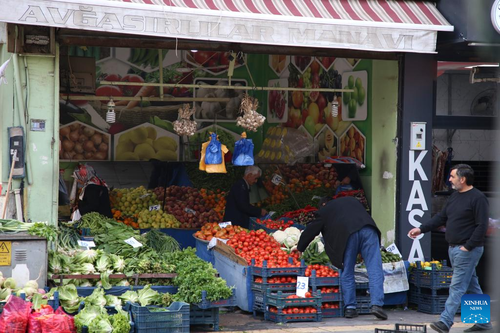 People shop at an open-air market in Kahramanmaras, Türkiye, Dec. 6, 2023. Kahramanmaras was the worst-hit province and the epicenter of the massive earthquakes in February this year. The reconstruction work has been carried out and residents here have got their lives back on track. (Xinhua/Li Zhenbei)