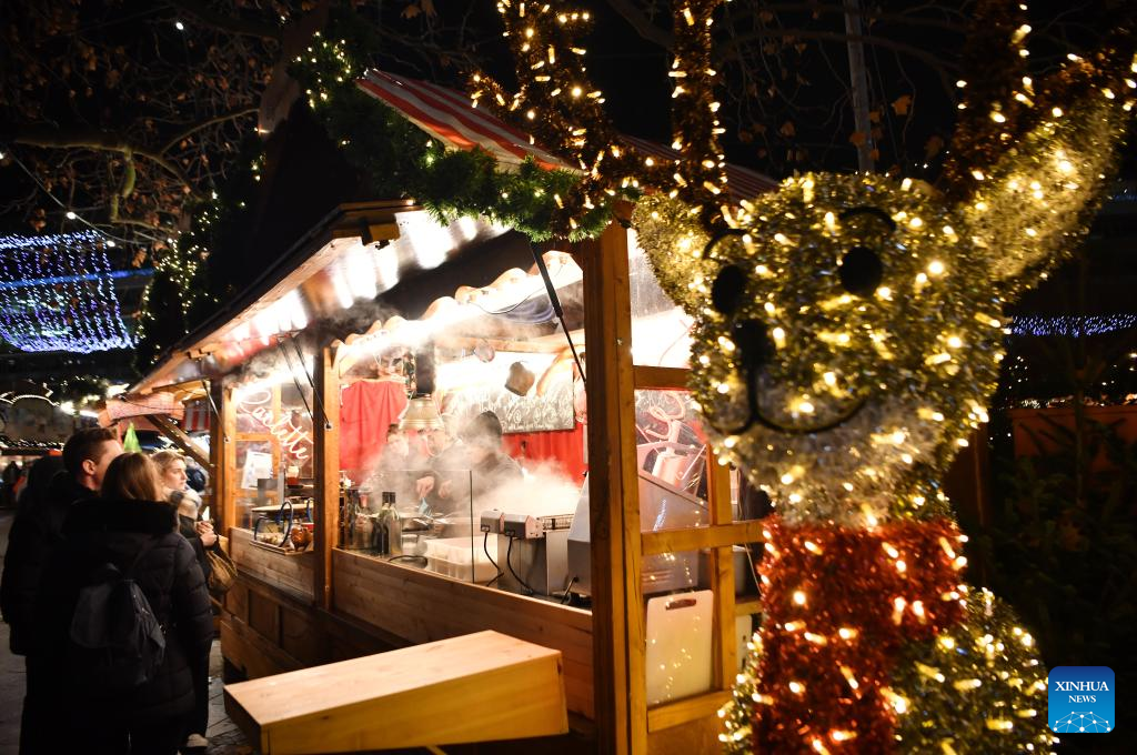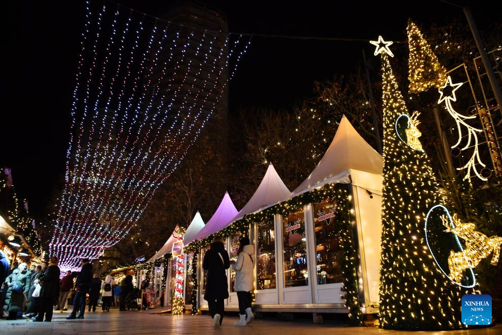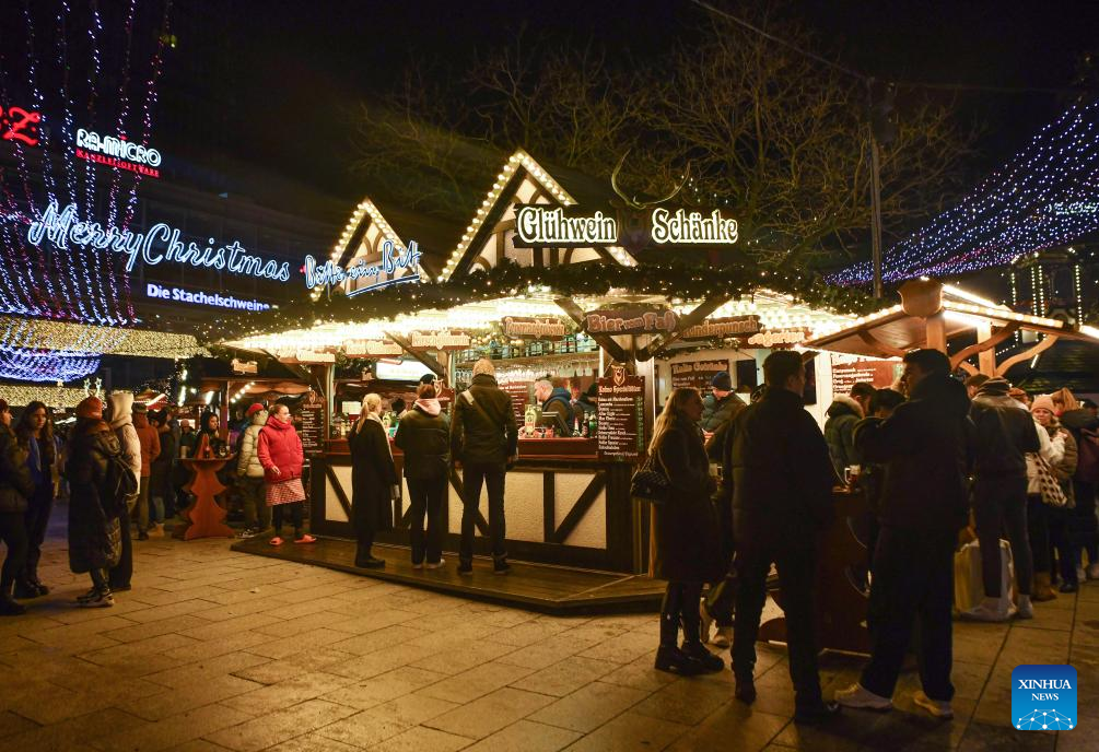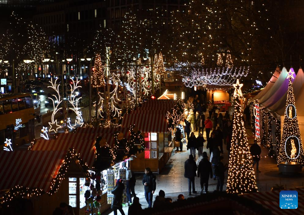 People visit a Christmas fair in Berlin, Germany, Dec. 20, 2023. (Xinhua/Ren Pengfei)