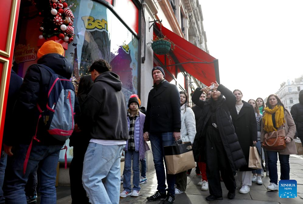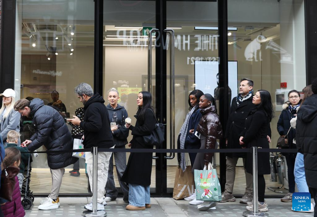 People line up outside a store during Boxing Day sales in London, Britain, on Dec. 26, 2023. (Xinhua/Li Ying)