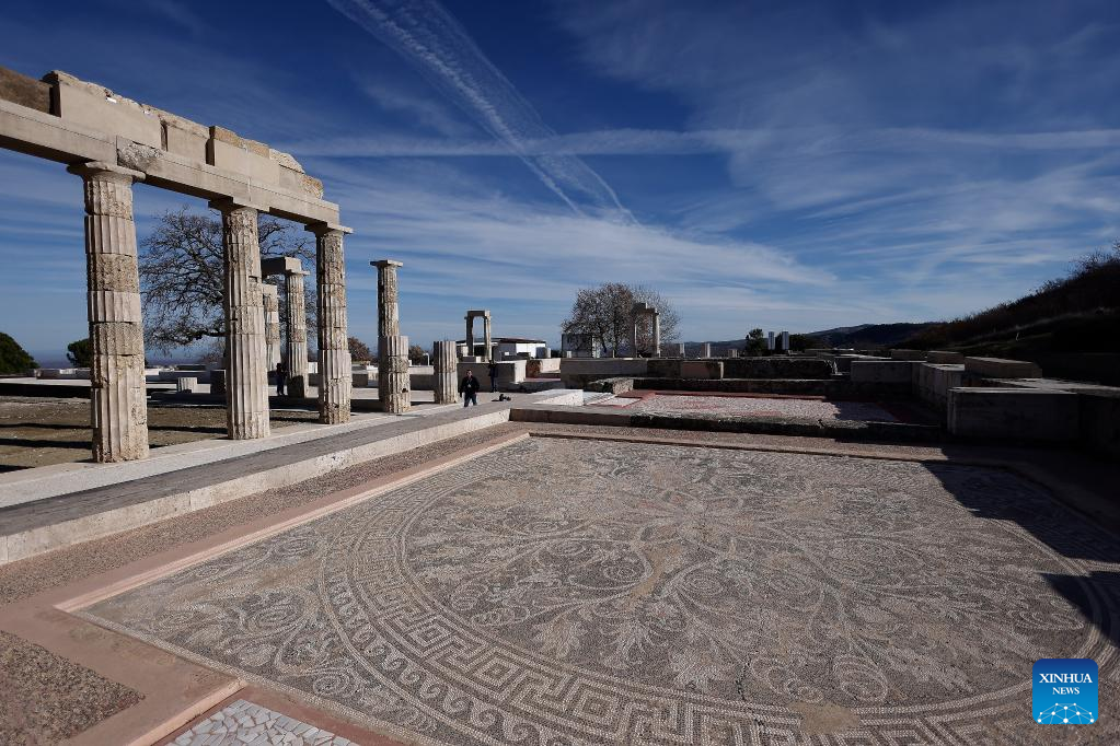 This photo taken on Jan. 5, 2024 shows a view of the site of a palace of the ancient kingdom of Macedonia at the archaeological site of Aigai in Vergina, Greece. (Photo by Dimitris Tosidis/Xinhua)