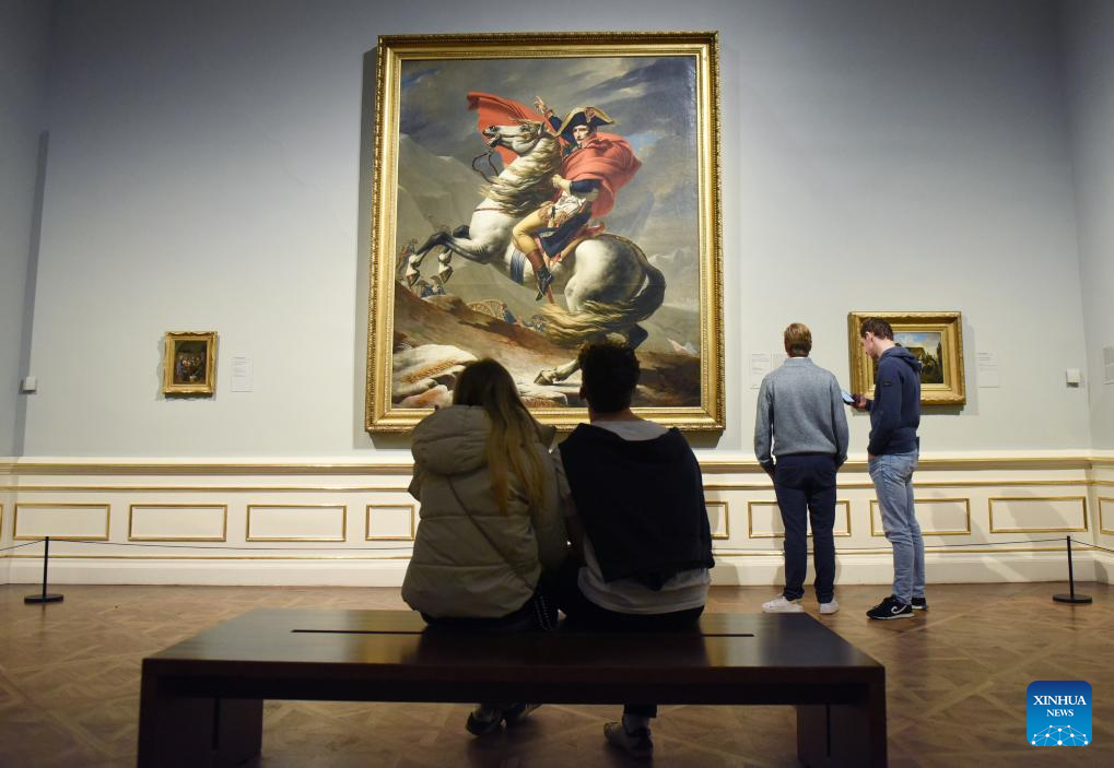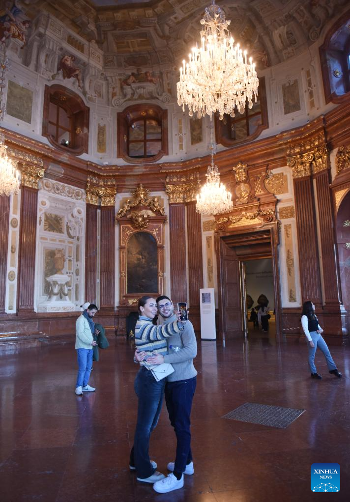 Visitors look at an exhibit at the Upper Belvedere in Vienna, Austria, on Jan. 9, 2024. The Upper Belvedere in Vienna houses one of Austria's most valuable art collections - with masterpieces by Gustav Klimt, Egon Schiele and Vincent van Gogh. (Photo by Han Lu/Xinhua)