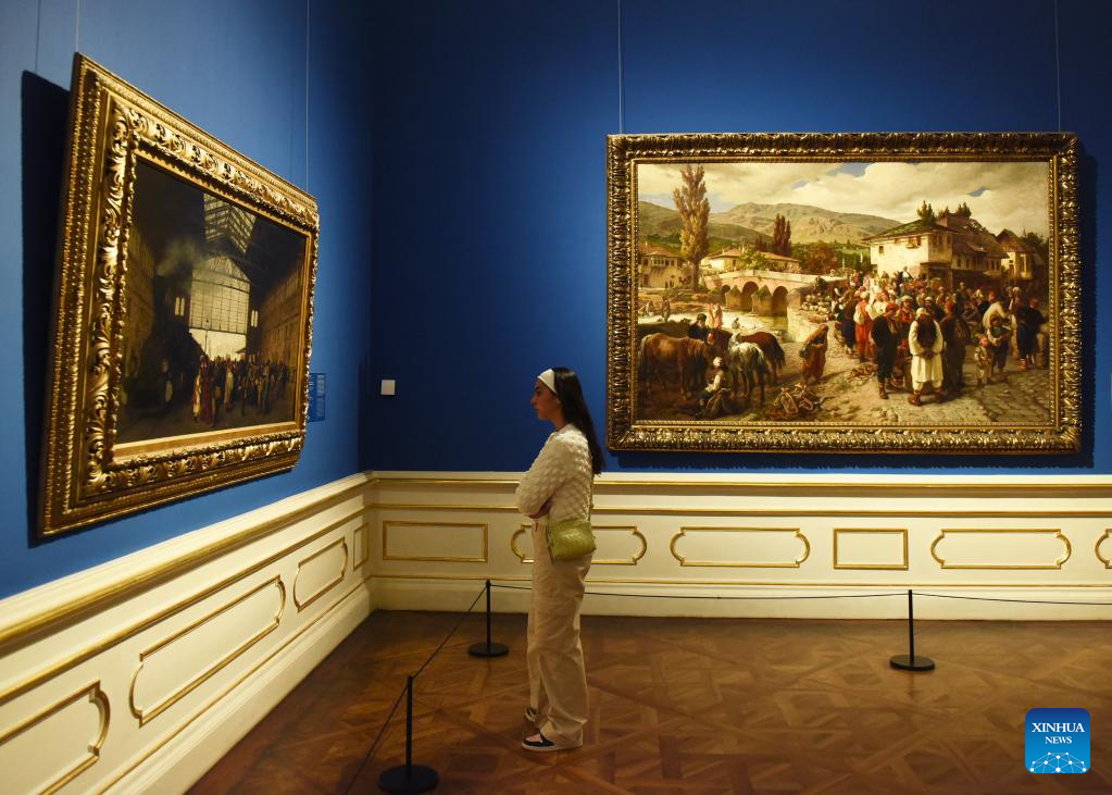 A woman looks at an exhibit at the Upper Belvedere in Vienna, Austria, on Jan. 9, 2024. The Upper Belvedere in Vienna houses one of Austria's most valuable art collections - with masterpieces by Gustav Klimt, Egon Schiele and Vincent van Gogh. (Photo by Han Lu/Xinhua)