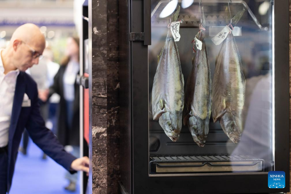 Dried fish are exhibited at HORECAVA 2024 in Amsterdam, the Netherlands, on Jan. 9, 2024. HORECAVA, a Dutch trade fair for food, beverage and service industry, is held here from Monday to Thursday. (Photo by Sylvia Lederer/Xinhua)
