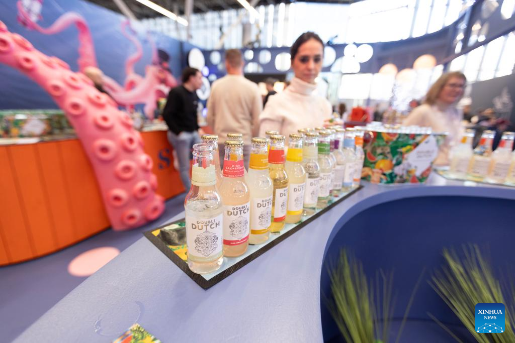 People visit a stand at HORECAVA 2024 in Amsterdam, the Netherlands, on Jan. 9, 2024. HORECAVA, a Dutch trade fair for food, beverage and service industry, is held here from Monday to Thursday. (Photo by Sylvia Lederer/Xinhua)