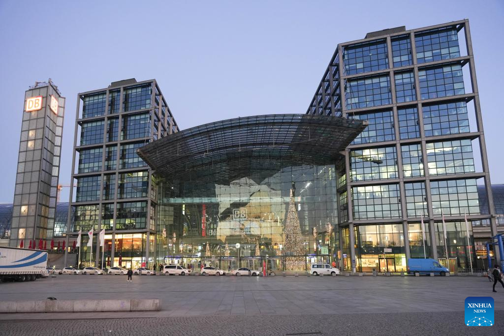 This photo taken on Jan. 10, 2024 shows a view in front of Berlin Central Train Station in Berlin, Germany. Train drivers in Germany went on strike for three days starting from Wednesday, severely restricting passenger transport across the country. Meanwhile, freight trains have been at a standstill since Tuesday night. (Photo by Stefan Zeitz/Xinhua)