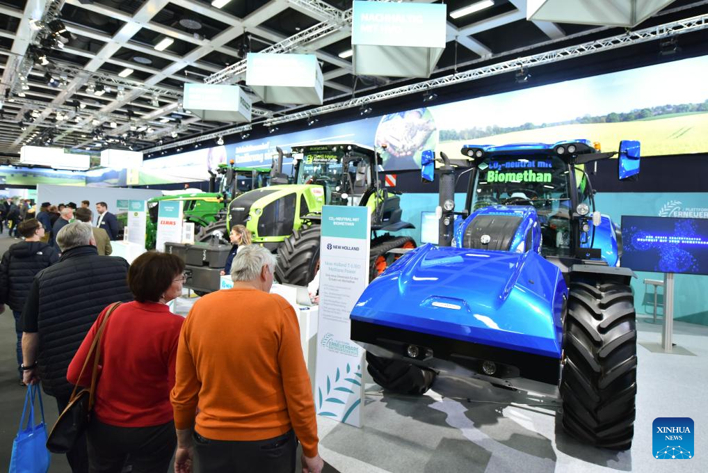 BERLIN, Jan. 19 (Xinhua) -- The International Green Week, a leading trade fair for food, agriculture and horticulture, opened to visitors on Friday in the German capital Berlin amidst protests by farmers against planned subsidy cuts.