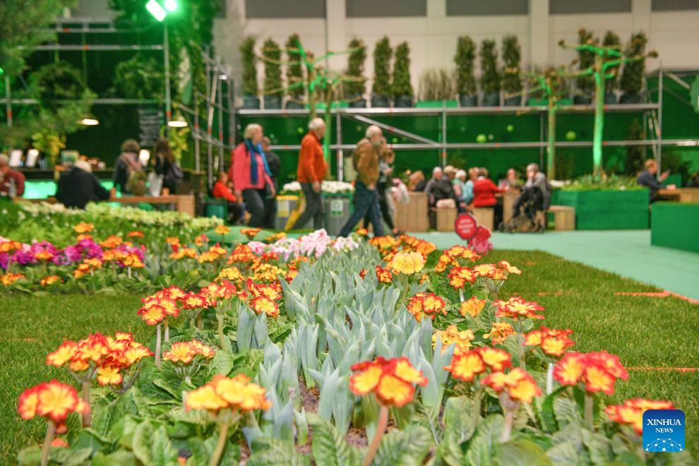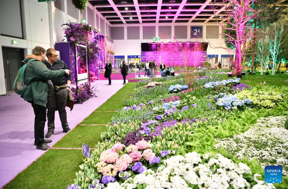 People visit an exhibition area during the International Green Week in Berlin, Germany, on Jan. 19, 2024. The International Green Week, a leading trade fair for food, agriculture and horticulture, opened to visitors on Friday in Berlin and will run until Jan. 28. (Photo by Ren Pengfei/Xinhua)