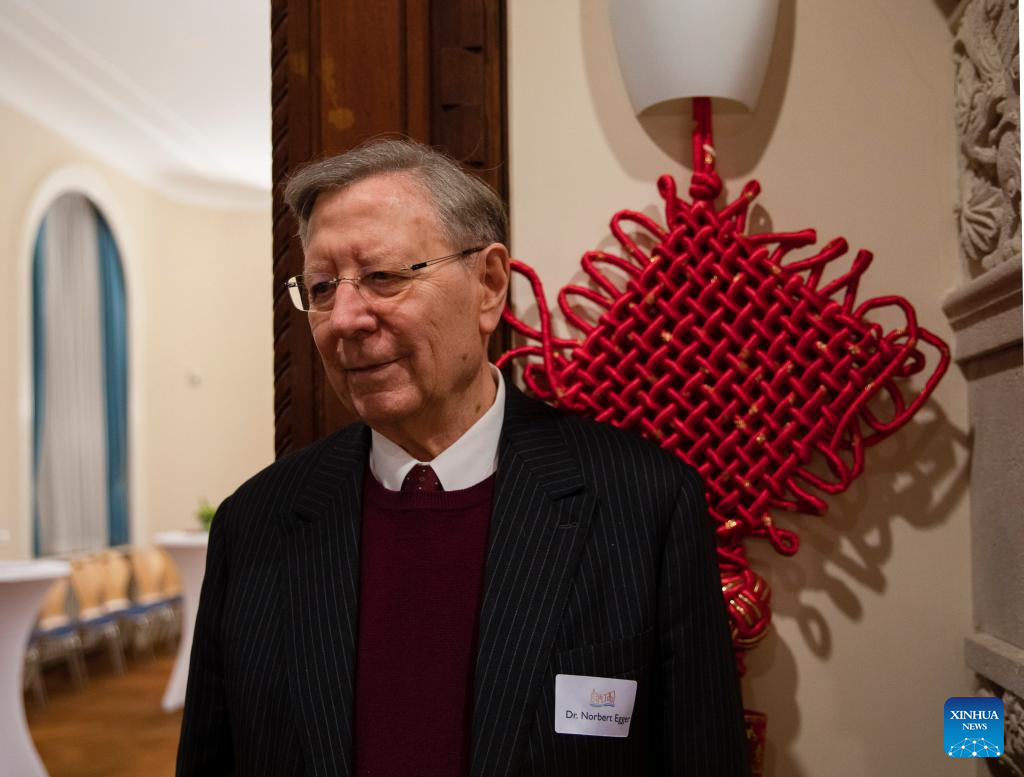 Dr. Norbert Egger, previously vice mayor of Mannheim, speaks during an interview in Frankfurt, Germany, Jan. 27, 2024. Dr. Norbert Egger was among nine Germans honored for contributing to Chinese-German friendship over recent decades at the Chinese Consulate General in Frankfurt Saturday. (Xinhua/Zhang Fan)