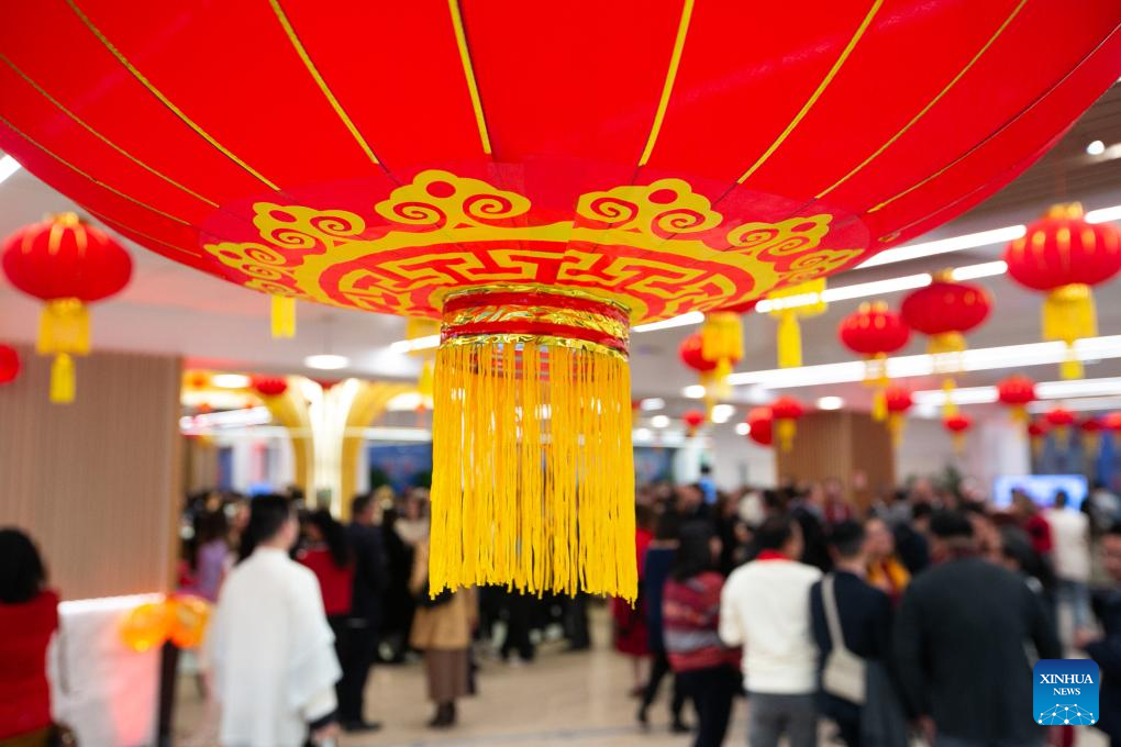 People attend an event to celebrate the Chinese Lunar New Year at the headquarters of the United Nations Food and Agriculture Organization (FAO) in Rome, Italy, on Feb. 2, 2024. The United Nations Food and Agriculture Organization (FAO) held a high-level event at its headquarters here on Friday to mark the upcoming Chinese Lunar New Year. (Xinhua/Li Jing)