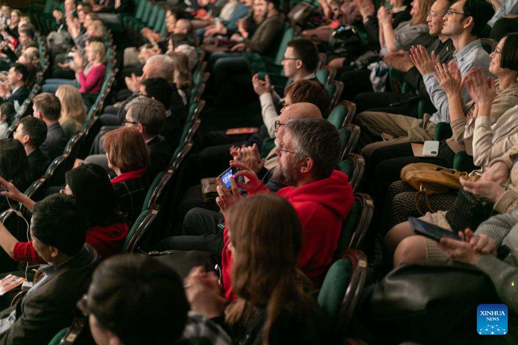 Audience watch the concert "Ancient Songs in Ancient Books" staged by artists from the China Coal Mine Art Troupe as part of the "Happy Chinese New Year" cultural event in Moscow, Russia, Jan. 30, 2024. (Xinhua/Bai Xueqi)
