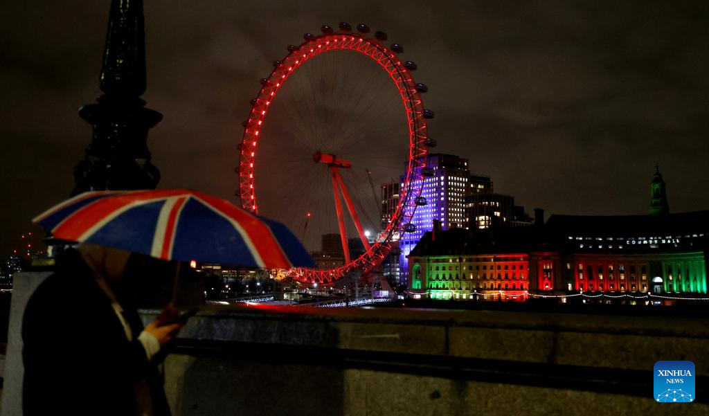 LONDON, Feb. 8 (Xinhua) -- As part of the Spring Festival celebrations, the London Eye, one of Britain's major landmarks, was illuminated in red and gold on Thursday, the auspicious colors traditionally used for the traditional festival, also known as the Chinese New Year.