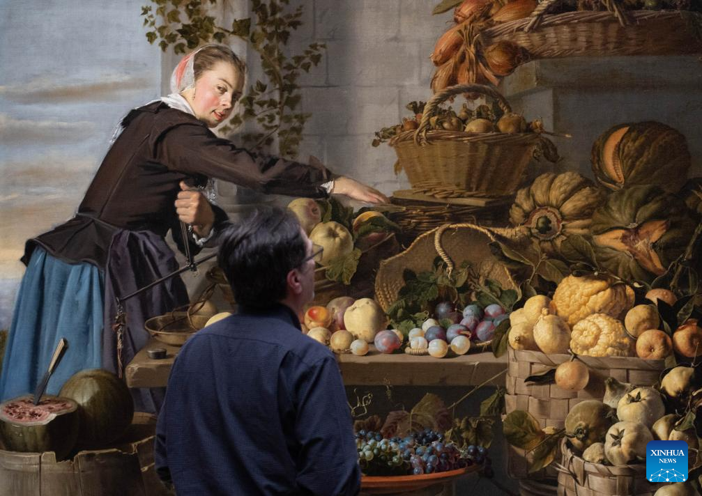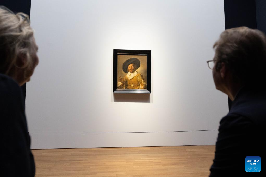 A visitor views a painting during the press preview of an exhibition of the works by Dutch painter Frans Hals at the Rijksmuseum in Amsterdam, the Netherlands, Feb. 13, 2024. The exhibition will be open to the public from February 16 to June 9. (Photo by Sylvia Lederer/Xinhua)