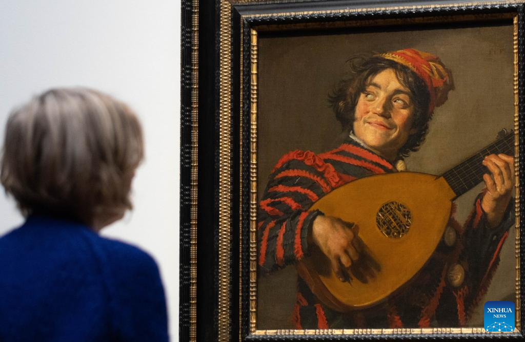 A visitor views Dutch painter Frans Hals's painting "The Lute Player" at the Rijksmuseum in Amsterdam, the Netherlands, Feb. 13, 2024. The exhibition will be open to the public from February 16 to June 9. (Photo by Sylvia Lederer/Xinhua)
