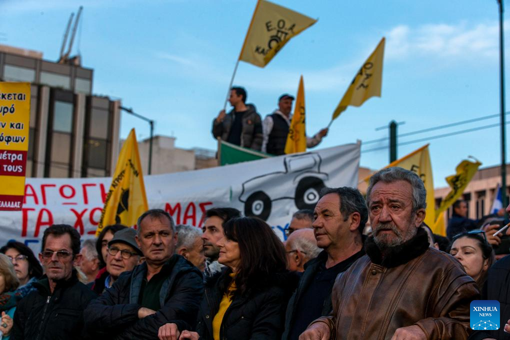ATHENS, Feb. 20 (Xinhua) -- Thousands of farmers protested in the center of Athens on Tuesday over increased production costs, requesting more state aid to stay in business.