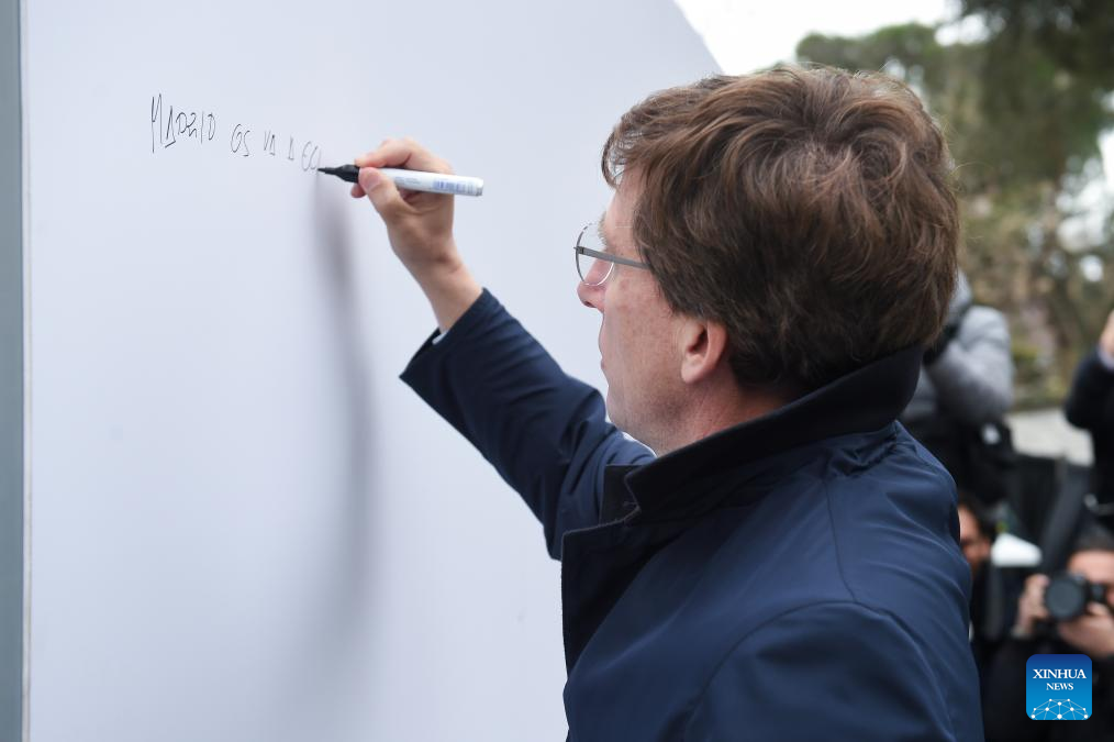 Madrid's Mayor Jose Luis Martinez-Almeida attends the farewell party to panda family of five in Madrid, Spain, Feb. 22, 2024. A zoo in Spain's capital Madrid hosted a farewell party on Thursday to bid goodbye to its beloved panda family of five who will soon return to China.
