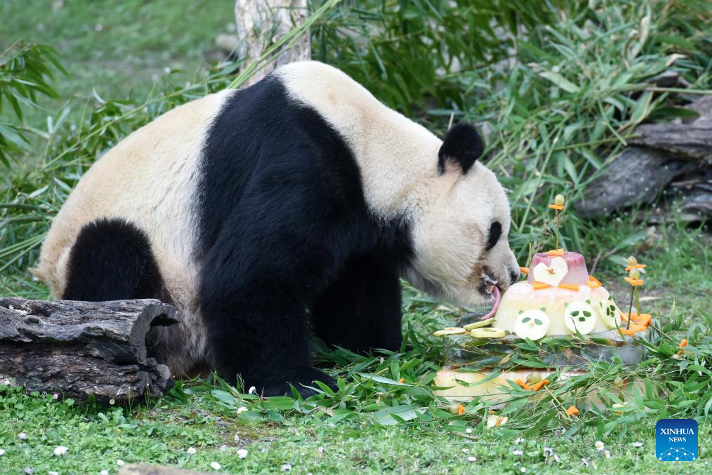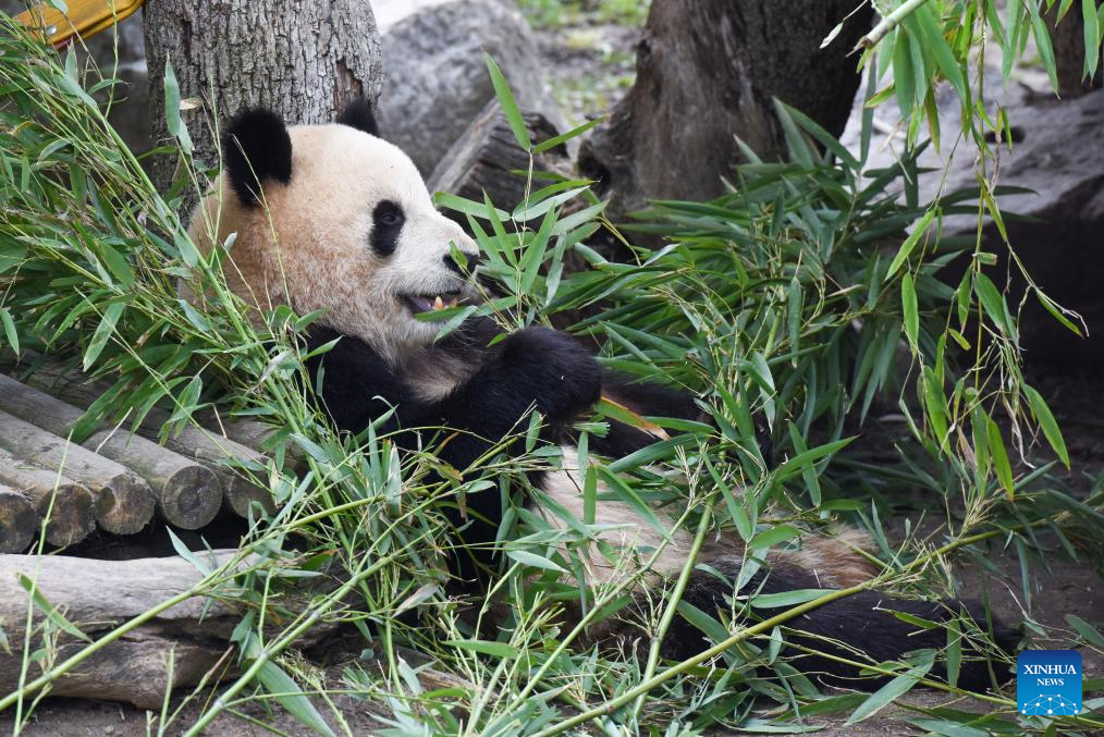 A giant panda is pictured at a zoo in Madrid, Spain, Feb. 22, 2024. A zoo in Spain's capital Madrid hosted a farewell party on Thursday to bid goodbye to its beloved panda family of five who will soon return to China.