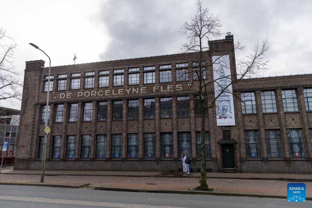 This photo taken on Feb. 23, 2024 shows the exterior view of the Royal Delft Museum in Delft, the Netherlands. (Xinhua/Meng Dingbo)