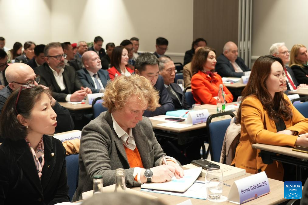 Guests attend the launch ceremony of Xi Jinping on Respecting and Protecting Human Rights (French-Chinese version) in Paris, France, Feb. 29, 2024. Dozens of French experts praised the important contribution of Chinese wisdom to global human rights governance at a thematic seminar here Thursday, in parallel with the launch of Xi Jinping on Respecting and Protecting Human Rights (French-Chinese version). (Xinhua/Zhang Baihui)
