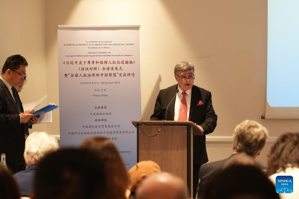 PARIS, March 1 (Xinhua) -- Dozens of French experts praised the important contribution of Chinese wisdom to global human rights governance at a thematic seminar here Thursday, in parallel with the launch of Xi Jinping on Respecting and Protecting Human Rights (French-Chinese version).