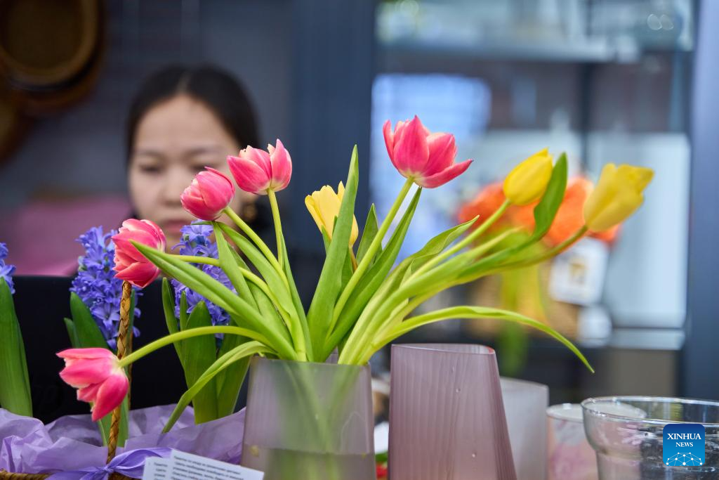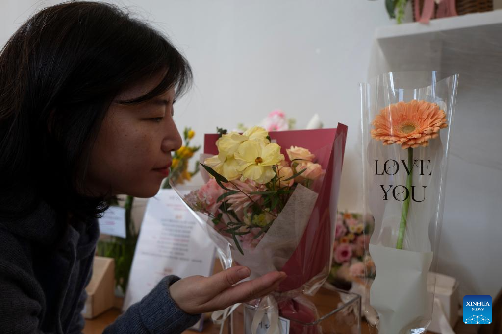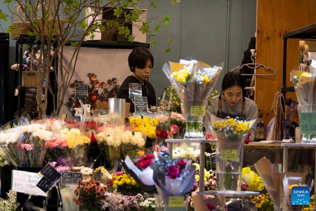 Women work at a flower shop on International Women's Day in Seoul, South Korea, March 8, 2024. (Photo by Jun Hyosang/Xinhua)