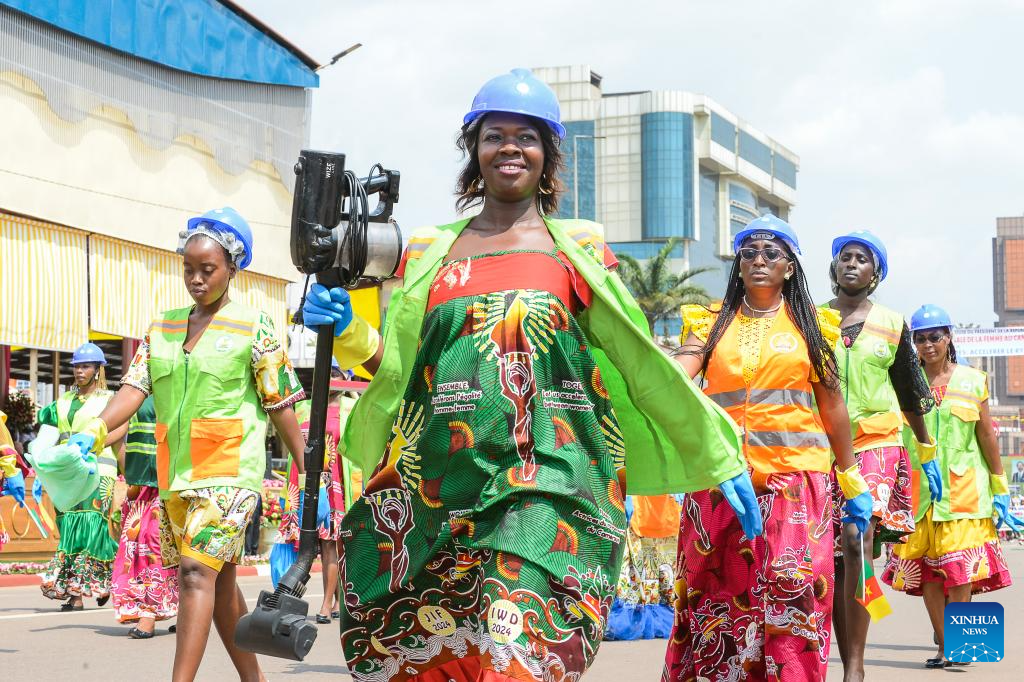 Women parade on International Women's Day in Yaounde, Cameroon, on March 8, 2024. Women from all walks of life participated in the parade here on Friday. (Photo by Kepseu/Xinhua)