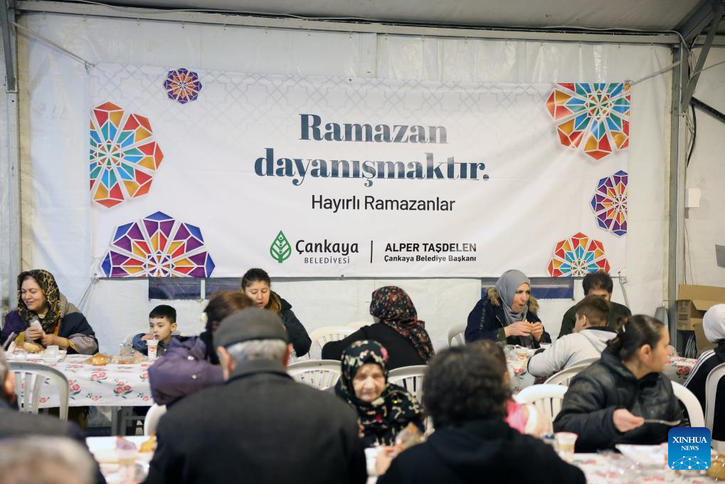 People have iftar meals during Ramadan in Ankara, Türkiye, on March 11, 2024. As the holy month of Ramadan begins, Turks are embracing it with a mixture of joy and worry due to unprecedented economic challenges gripping their nation. (Photo by Mustafa Kaya/Xinhua)
